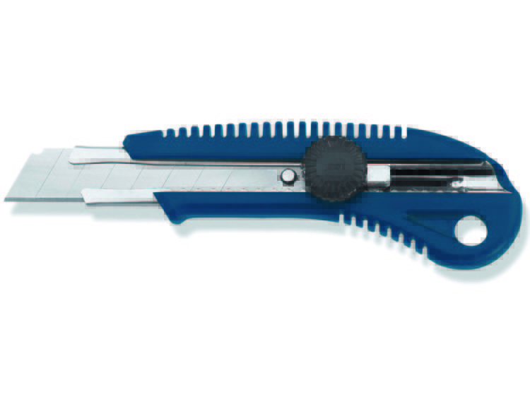 - Нож с отламывающимся лезвием, алюм. с метал. вставкой COLOR EXPERT 18мм 95652027 имеет пластмассовый корпус.