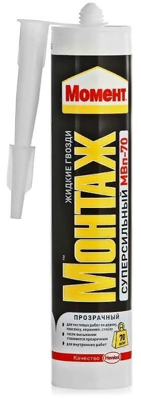 Момент Монтаж Суперсильный МВп-70 прозрачный обладает высокой начальной силой склеивания (70 кг/м2) и отлично подходит для различных ремонтных работ. Области применения: