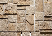 Массивный прямоугольный декоративный камень разных размеров с грубо обработанной поверхностью. "Средневековый замок" придаст зданию строгий, монументальный вид. Оригинальный вариант для отделки фасада.