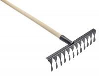 Витые грабли с жесткими зубьями предназначены не только для ухода за газоном, сбора листвы, веток и прочего садового мусора, но также для рыхления и разравнивания посадочных территорий. Надежно зафиксированный деревянный черенок обеспечивает комфортную работу, а прочные зубья легко разбивают земляные комки и проникают в верхние слои перекопанной почвы. Витые грабли – это незаменимый инструмент для садоводов, дачников и владельцев частных домов. Преимущества: