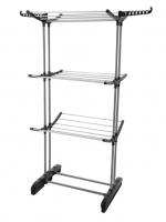 Материал исполнения - качественная нержавеющая сталь, покрытая защитным порошковым слоем. Такая технология обеспечивает полную защиту от коррозии. Максимальная допустимая нагрузка достигает 15 кг. Напольное покрытие защищают колпачки из пластика на ножках сушилки. Приспособление легко складывается, раскладывается и удобно в хранении.