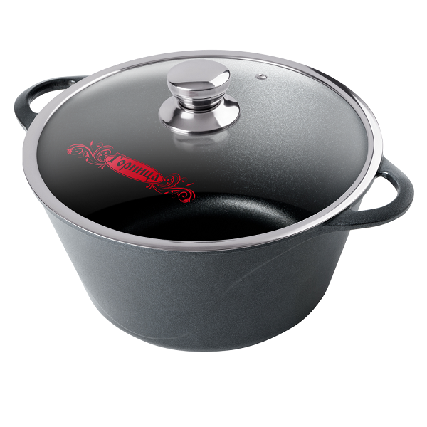 Литая алюминиевая кастрюля с антипригарным покрытием подходит для газовых, электрических и стеклокерамических плит. Кастрюли с цельнолитыми ручками можно использовать в духовом шкафу. «Классик». Базовая коллекция с однотонным чёрным покрытием.