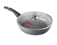 «Гранит». Коллекция посуды с улучшенным четырёхслойным антипригарным покрытием. Дополнительный слой с мраморным эффектом увеличивает износостойкость и создаёт оригинальный оттенок чёрного мрамора. Литой пищевой алюминий не имеет канцерогенных веществ и посторонних запахов. Толстые стенки и дно обеспечивают равномерное приготовление блюда. Посуда не деформируется при нагревании.